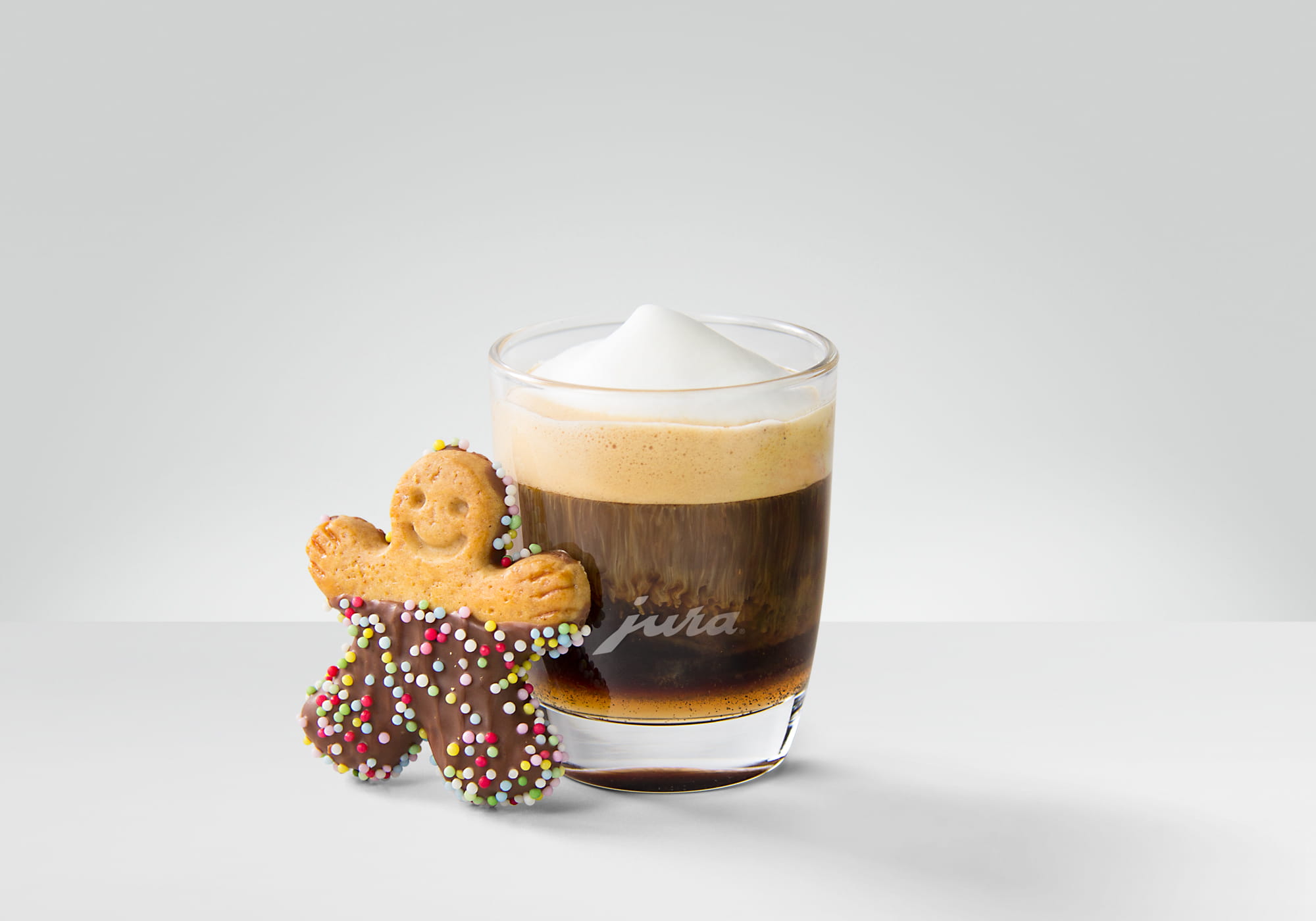 • Ha vaniljesirupen og pepperkakekrydderet i et espressoglass.