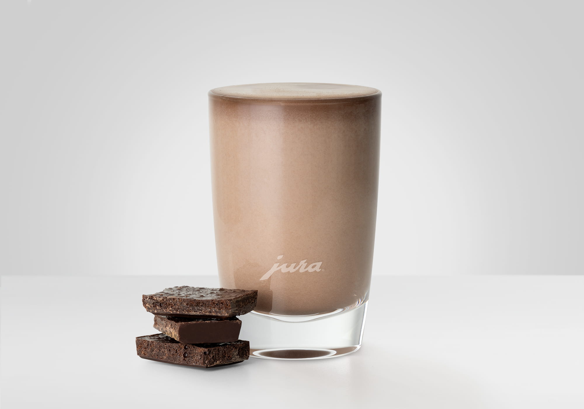 • Hell den varme sjokoladen i et lite latte macchiato-glass.