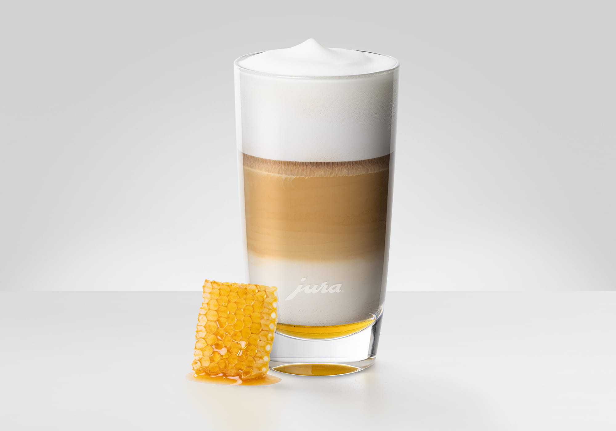 • Sett i et latte macchiato-glass og tilsett honningen.