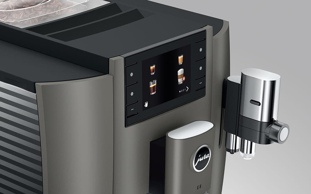 Det karakteristiske designet på kaffespesialitetsmaskiner fra JURA er rent og uttrykksfullt. Materialer i høy kvalitet og en presis produksjon understreker premiumkvaliteten på moderne E8. Kvaliteten, funksjonaliteten og holdbarheten speiles i utformingen. Detaljer som vanntank med riller eller forkrommet høykvalitets kopplattform, setter prikken over i-en på det rene og harmoniske designet til E8.
