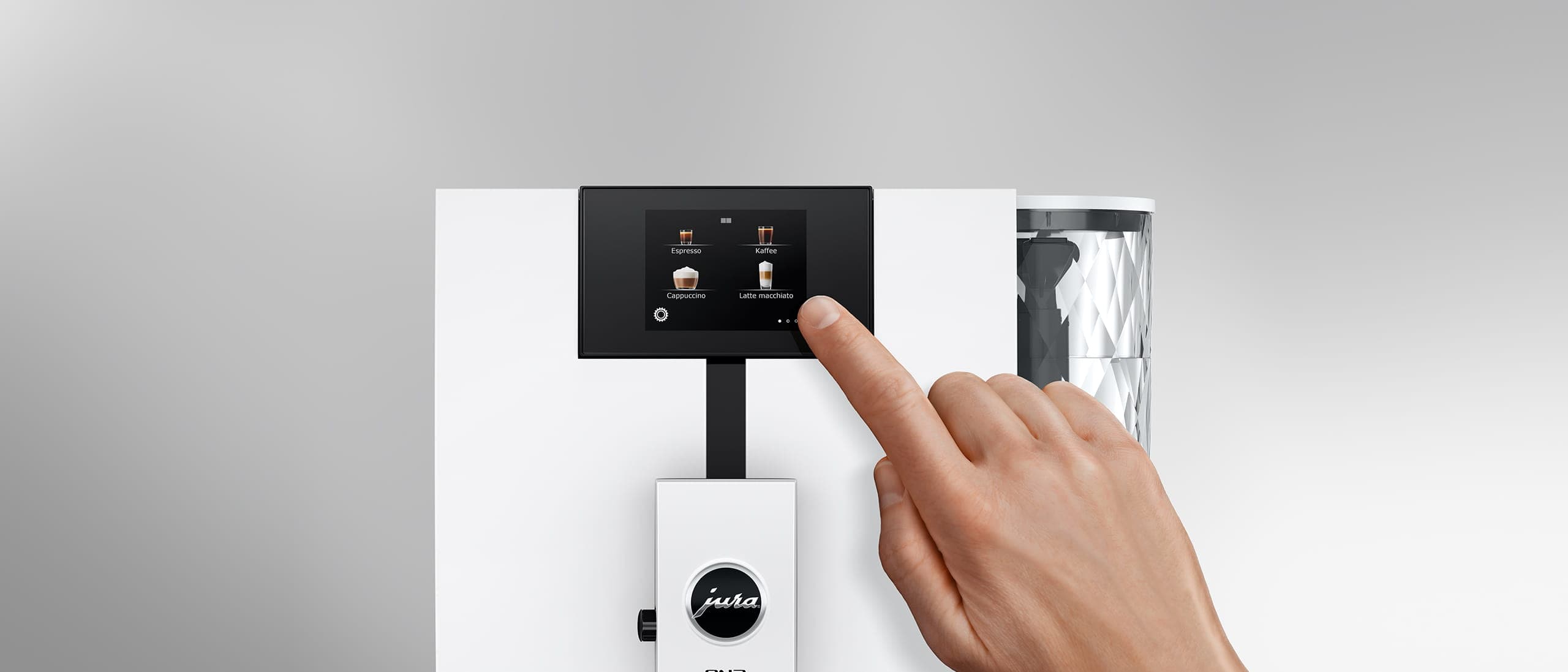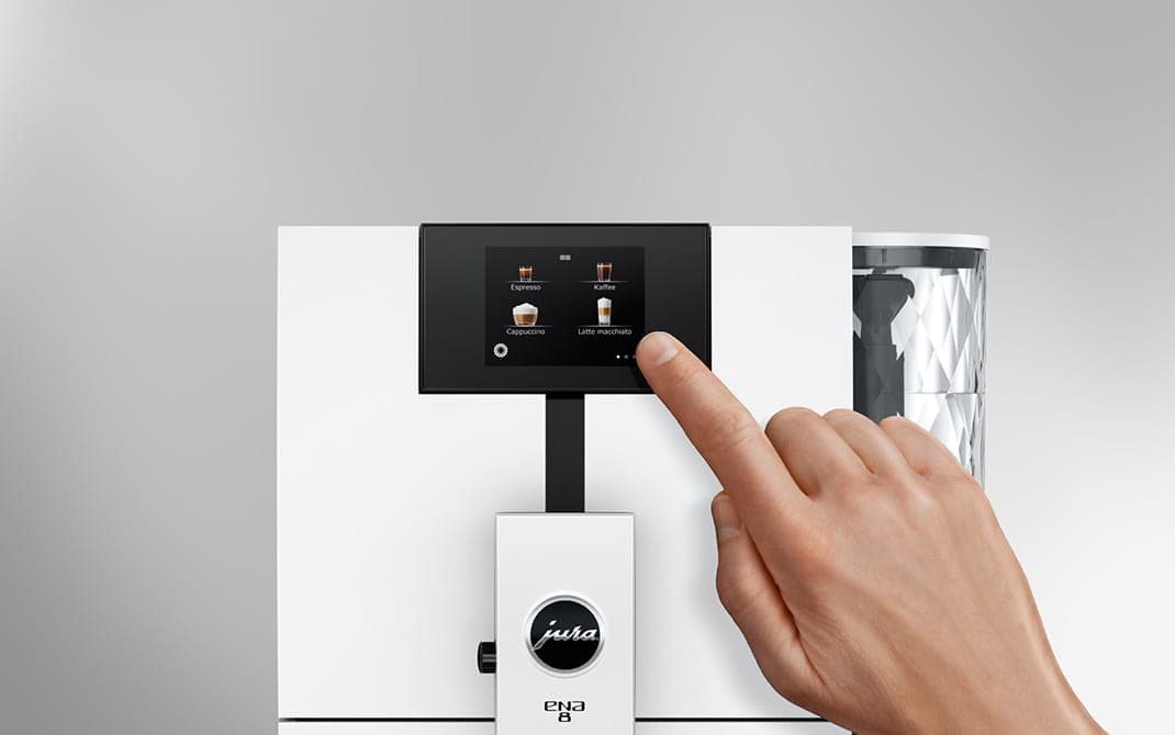 Det oversiktlige berøringsdisplayet og den intuitive, stringente veilederen stiller 15 spesialiteter til rådighet for deg, kun ved hjelp av ett trykk med fingeren. Like ukomplisert kan du starte rengjøringen av melkesystemet med ett tastetrykk, slik at du alltid har TÜV-sertifisert hygiene. Du kan også betjene kaffespesialitetsmaskinen via smarttelefonen: ENA 8 har nemlig WiFi-teknologi, og er kompatibel med J.O.E.®.