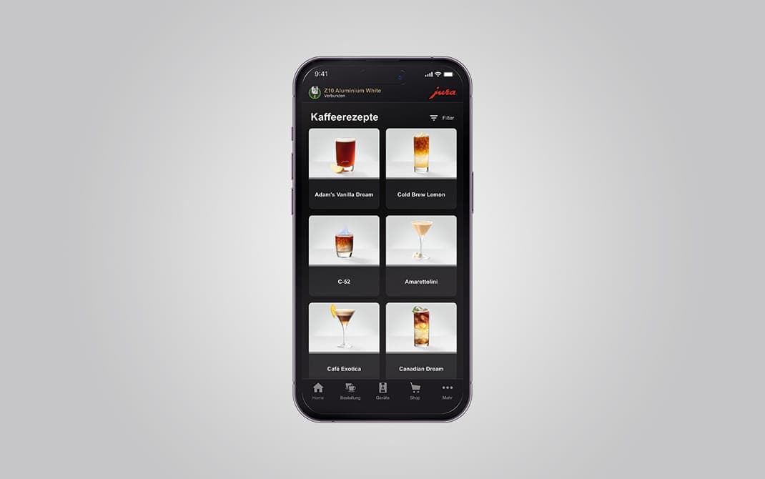 «Hot Iceberg» eller «Cold Brew Tonic» – la JURA inspirere deg til å oppdage en rekke kaffenytelser med sine helt egne oppskrifter. Med J.O.E.® kan du enkelt prøve ut alle oppskriftene. Med fingertuppen starter du tilberedningen enkelt via appen, og kaffenytelsene står i kø.