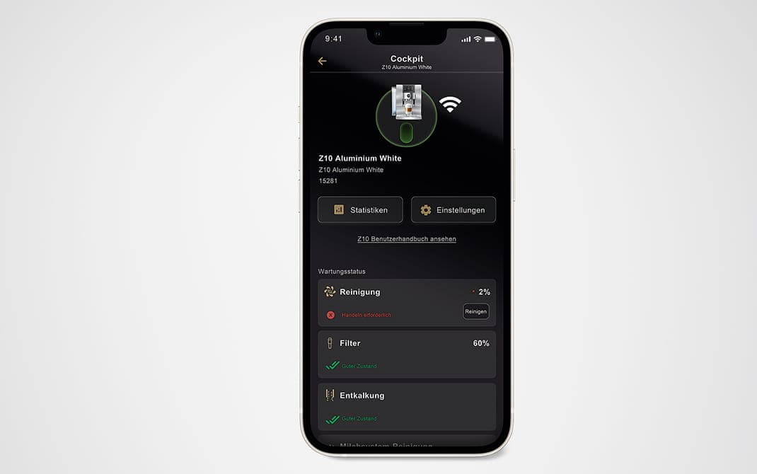 J.O.E.® har diverse tips og mye informasjon på lager for deg i JURA Cockpit: Videoinstruksjoner og statistikk er alltid tilgjengelig, og takket være lett tilgjengelige statusmeldinger er vedlikeholdsarbeidet aldri forsinket.