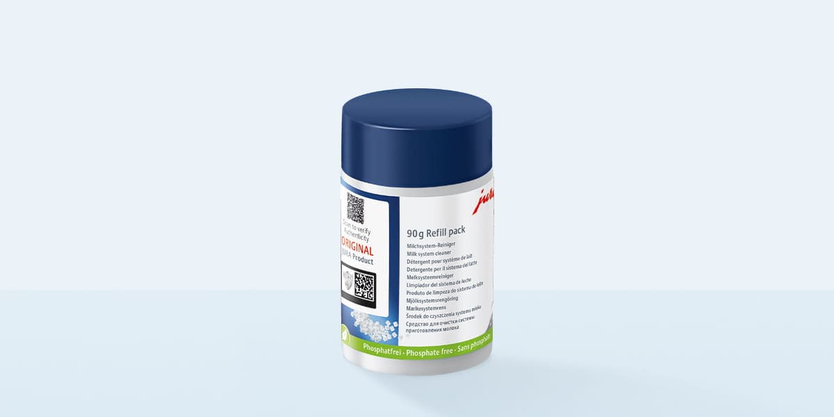 Finskumsteknologien til JURA muliggjør kaffespesialiteter som latte macchiato, cappuccino, espresso macchiato eller flat white på høyeste nivå. For at det skal vedvare, ble rengjøringsmiddelet for melkesystem utviklet i form av mini-tabletter. I samspill med det automatiske rengjøringsprogrammet fjerner det melkefett og proteiner svært effektivt. Ledningene som dermed til enhver tid er hygienisk rene, garanterer et alltid luftig, mykt og finporet melkeskumsresultat